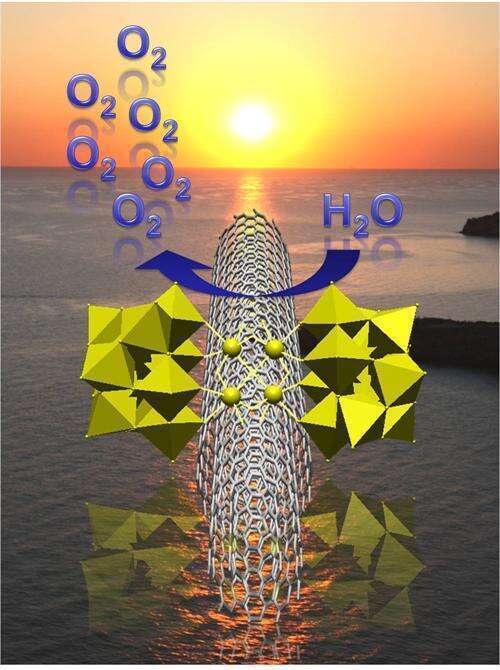 In Nature, oxidation catalysis is essential for aerobic life. Nature has evolved some perfect machineries to generate, store and translocate redox equivalents, powering some vital processes, such as the photosynthetic cycle of the chloroplast and its alter-ego found in the mitochondrial respiration chain. The artificial “off-leaf” transposition of Photosynthesis, is one major goal of energy research, aiming at the continuous production of hydrogen as solar fuel, through the photo-catalytic splitting of H2O.[1] Success in this task primarily depends on the interplay of light-activated multi-electron oxidation and reduction routines and on the invention of stable and robust water oxidation catalysts, liberating oxygen with fast rates, high quantum yield, and long-term activity.We will highlight a recently discovered pathway carved within the class of inorganic molecular metal-oxides displaying a unique mimicry of the PSII enzyme.[2] Furthermore, the shaping of their functions at the interface of specifically tailored carbon nano-structures and/or polymeric scaffolds opens a vast scenario for tuning electron/proton transfer mechanisms in term of rates, distance, geometries and communication between donor/acceptor centers.[3]