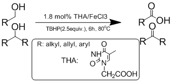 Scheme 1.Thymine acetate iron complex catalyzed oxidation of alcohols to acids and ketones.