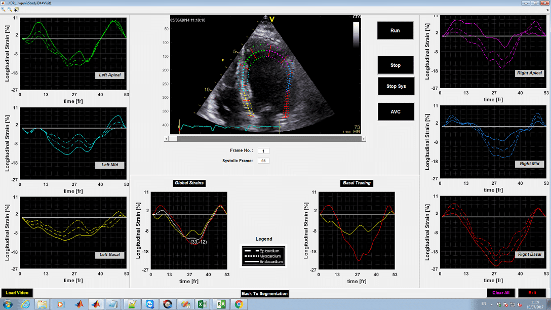 The GUI as tested on ~100 clips of various views - LAX, 2CH, 4CH, in DICOMS and AVI formats. A GUI snapshot is shown below.